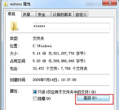 Windows 7,中文名稱視窗7,是由微軟公司(Microsoft)開發的操作系統,內核版本號為Windows NT 6.1。Windows 7可供家庭及商業工作環境:筆記本電腦 、平板電腦 、多媒體中心等使用。Windows 7可供選擇的版本有:入門版(Starter)、家庭普通版(Home Basic)、家庭高級版(Home Premium)、專業版(Professional)、企業版(Enterprise)(非零售)、旗艦版(Ultimate)。 大家都知道,當C盤占用空間過大的話,對電腦運行速度有一定程度上的影響,那么如何解決這個問題呢?現Win7系統之家給大家介紹巧妙解決Win7系統C盤占用空間過大的問題的方法,具體步驟如下:1、使用系統管理員的賬戶登錄電腦。然后打開“計算機”,在C盤中找到windows文件夾中的winsxs文件夾,如圖: ![]() 2、然后查看這個文件夾的屬性,點擊高級按鈕,如圖: ![]() 3、選擇壓縮內容以節省磁盤空間。 ![]() windows 7 的設計主要圍繞五個重點——針對筆記本電腦的特有設計;基于應用服務的設計;用戶的個性化;視聽娛樂的優化;用戶易用性的新引擎。 跳躍列表,系統故障快速修復等,這些新功能令Windows 7成為最易用的Windows。 |