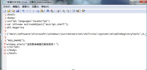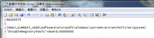 Windows 7,中文名稱視窗7,是由微軟公司(Microsoft)開發的操作系統,內核版本號為Windows NT 6.1。Windows 7可供家庭及商業工作環境:筆記本電腦 、平板電腦 、多媒體中心等使用。Windows 7可供選擇的版本有:入門版(Starter)、家庭普通版(Home Basic)、家庭高級版(Home Premium)、專業版(Professional)、企業版(Enterprise)(非零售)、旗艦版(Ultimate)。 Win7 32位系統中注冊表被管理員鎖定后如何去除?注冊表是windows中一個很重要數據庫,用于存儲系統以及應用程序的設置的信息。但是注冊表被管理員鎖定后,有時當用戶遇到一些瀏覽器默認主頁被更改的話,就無法修改了。解決方法就是將鎖定的注冊表去除鎖定,現Win7系統之家給大家介紹具體方法/步驟。方法一: 我們在桌面上新建一個記事本文件,之后輸入以下內容:REGEDIT4 [HKEY_CURRENT_USER\Software\Wicrosoft\Windows\currentversion\Policies\System] "DisableRegistryTools"=dword:00000000 注意事項:REGEDIT4不能空格而且必須大寫,然后下面要空一行再寫路徑。用記事本另存為以.reg為擴展名的文件,雙擊然后執行。 ![]() 方法二: 我們還可以利用網頁的文件(.htm)解鎖注冊表。如圖示在記事本中這樣輸入后另存為擴展名為htm的文件,運行就ok了。 ![]() windows 7 的設計主要圍繞五個重點——針對筆記本電腦的特有設計;基于應用服務的設計;用戶的個性化;視聽娛樂的優化;用戶易用性的新引擎。 跳躍列表,系統故障快速修復等,這些新功能令Windows 7成為最易用的Windows。 |