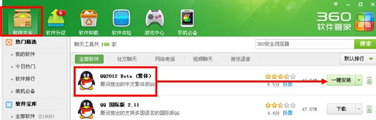 Windows 7,中文名稱視窗7,是由微軟公司(Microsoft)開發的操作系統,內核版本號為Windows NT 6.1。Windows 7可供家庭及商業工作環境:筆記本電腦 、平板電腦 、多媒體中心等使用。Windows 7可供選擇的版本有:入門版(Starter)、家庭普通版(Home Basic)、家庭高級版(Home Premium)、專業版(Professional)、企業版(Enterprise)(非零售)、旗艦版(Ultimate)。 Win7旗艦系統中安裝了qq2012后,打開時出現“應用程序的并行配置不正確”的錯誤提示,造成無法打開,怎么辦呢?其實Win7旗艦系統中打不開QQ2012提示“應用程序的并行配置不正確”的解決方法就是重新安裝qq。但是由于一般的卸載程序并不能完全的刪除所有的文件,未完成刪除的話即便是重裝了qq,也還是無法解決問題。現Win7系統之家給大家介紹善用安全軟件卸載程序后再重新安裝的方法,具體如下:一、準備工作: 下載360安全衛士(或其他安全軟件) 二、操作步驟: 1、打開360安全衛士,在右上角有一個【軟件管家】,打開它。這這里你可以對軟件進行卸載和安裝等。 ![]() 2、在軟件管家中,找到【軟件卸載】,進入可卸載的軟件列表中 ![]() 3、在這個列表中,找到騰訊2012,然后點擊右側的【卸載】 ![]() 4、彈出確定卸載的提示,點擊【是】即可 ![]() 5、等待幾分鐘,然后就會提示你寫在成功,點擊確定按鈕。 ![]() 6、接著找到騰訊qq,你會發現存在殘留,點擊右側的【強力清掃】,我們進一步刪除無用的文件 ![]() 7、勾選這里的所有文件,然后點擊下面的【刪除所選項目】, ![]() 8、在彈出的是否刪除提示框中,選擇確定。 ![]() 9、等待幾分鐘卸載就完成了點擊確定。此時候仍未刪除所有的文件,還要進行下面的操作。打開文件夾:C:\Users\計算機名\AppData ,在這個文件夾中,找到Tencent文件夾,刪除之 ![]() 10、接著來到計算機的C盤,對沒有用的tencent文件夾進一步清掃,在搜索框輸入tencent,按下回車鍵 ![]() 11、在搜索結果中,刪除所有的tencent文件夾,至此你的qq已經是完全卸載了。 ![]() 12、接著來到360安全衛士,在【軟件管家】中找到【軟件大全】,在軟件寶庫中你會看到有很多軟件,找到qq2012,然后點擊右側的一鍵安裝。等待幾分鐘,安裝就可以完成了。啟動你的qq,看看問題解決了沒有。 ![]() PS:qq無法啟動的原因很多,有的可能是系統問題,所以當完全卸載qq后重新安裝還是無法啟動,可能就是電腦系統的問題了,也許需要重裝系統了。 windows 7 的設計主要圍繞五個重點——針對筆記本電腦的特有設計;基于應用服務的設計;用戶的個性化;視聽娛樂的優化;用戶易用性的新引擎。 跳躍列表,系統故障快速修復等,這些新功能令Windows 7成為最易用的Windows。 |