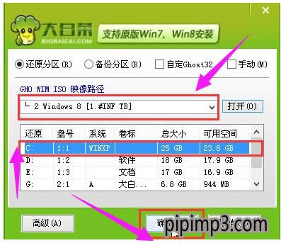 U盤載圖2 瀏覽存放在制作好的大白菜u盤啟動(dòng)盤中的原版win8鏡像包,點(diǎn)擊“打開(O)”進(jìn)入下一步操作。