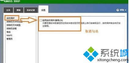 Defender界面。打開Windows Defender,依次點擊“設(shè)置”→“實時保護”,將“啟用實時保護(推薦)”對勾去掉,保存更改即可。