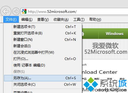 2、或者也可以不顯示菜單欄,點擊IE瀏覽器窗口右上角的齒輪狀“工具”圖標,在彈出的菜單中點擊“文件”菜單下的“另存為”; 3、這時會彈出“保存網(wǎng)頁”對話窗口;