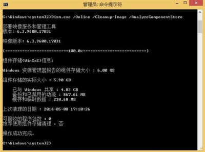 以上就是Win8系統(tǒng)winsxs文件夾瘦身的方法了,方法很簡單,我們只需要以管理員的身份打開命令提示符,之后在里面輸入dism.exe/online/cleanup-image/startcomponentcleanup,最后按下回車即可清理winsxs文件夾。