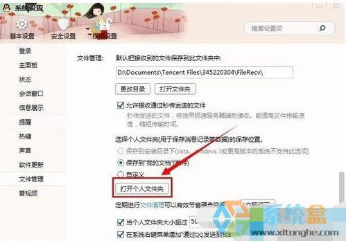 4、點擊打開文件管理后右側有一個“打開個人文件夾”,找到并點擊該選項卡。