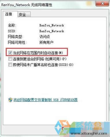 3、點擊屬性后會彈出一個“無線網(wǎng)絡(luò)屬性”的對話框,在連接項下將“當(dāng)此網(wǎng)絡(luò)在范圍內(nèi)自動連接”取消勾選,點擊確定保存設(shè)置即可。