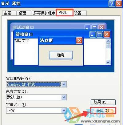 Windows XP是美國微軟公司研發的基于X86、X64架構的PC和平板電腦使用的操作系統,于2001年8月24日發布RTM版本,并于2001年10月25日開始零售。其名字中“XP”的意思來自英文中的“體驗(Experience)”。該系統是繼Windows 2000及Windows ME之后的下一代Windows操作系統,也是微軟首個面向消費者且使用Windows NT5.1架構的操作系統。 很多人在長時間使用電腦進行工作或娛樂后,總會感到眼睛非常的干澀不舒服,時間久了會對大家的視力造成影響。為了避免這種情況出現,小編今天為大家分享一個設置保護視力的背景色的技巧。如何設置保護視力的背景色: 1、在桌面空白處右鍵,選擇屬性,打開電腦顯示屬性設置。 ![]() 2、切換到“外觀”標簽頁,點右下角的“高級”按鈕進入“高級外觀”設置窗口。 ![]() 3、在“高級外觀”設置窗口的下拉列表選擇“窗口”。 ![]() 4、點擊其他顏色,設置保護色:建議將色調設定為:85。飽和度:90。亮度:205。(飽和度可在90-123范圍之間,建議90為最佳。) ![]() 5、通過以上設置后,打開窗口,就會發現窗口顏色變為護眼的豆沙綠色。 ![]() 以上便是小編為大家分享的如何在WinXp電腦中設置保護視力的背景色的小技巧,希望大家能及早設置,在使用電腦時不會對大家的視力造成太大的損害。 Windows XP服役時間長達13年,產生的經濟價值也較高。2014年4月8日,微軟終止對該系統的技術支持,但在此之后仍在一些重大計算機安全事件中對該系統發布了補丁。 |