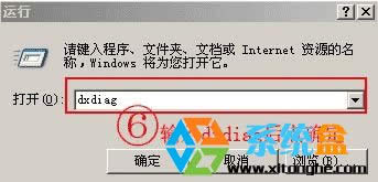 第六步:在彈出窗口的輸入框內(nèi)輸入dxdiag后點確定。這時您將看到一個彈出窗口“DirectX診斷工具”。