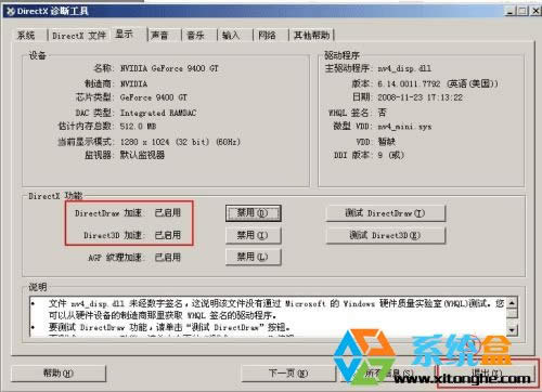 第九步:此時您的D3D加速顯示“已啟用”。點擊右下角的“退出”按鈕后,您就可以正常的進行游戲了。
