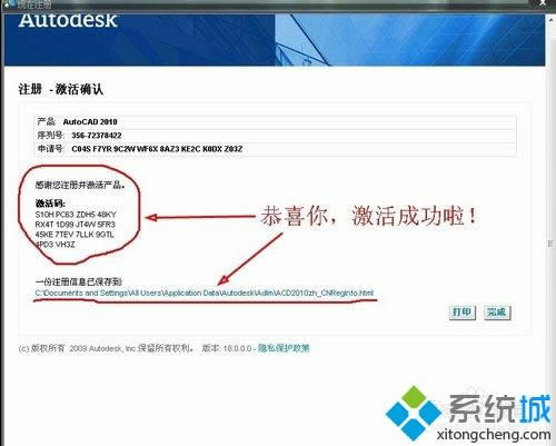 11、將注冊機里計算的激活碼粘貼到這里,點擊下一步就完成了。點擊完成就可以了。