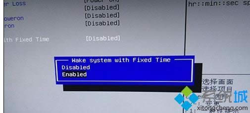 6、選好后,按住Enter,就設(shè)為支持來電啟動了。最初我以為到這一步我就設(shè)置好了,試驗(yàn)了一次不行,于是我就找原因; 7、終于找到了原因,還得設(shè)置啟動的時間,啟動時間在最后一項(xiàng),默認(rèn)也是不允許設(shè)置(Disabled);